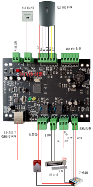 | 2、輸入/輸出(I/O)配置豐富:輸入INPUT共5路:出門按鈕1路,消防聯(lián)動1路,門磁檢測1路,紅外報警1路,可擴展防撬報警等輸入1路;輸出OUT共6路:電鎖繼電器1路,報警繼電器1路,WG讀卡器2套4路聲光響應(yīng)輸出(聲音BUZ和光亮LED響應(yīng)三極管輸出2*2=4路)。 |